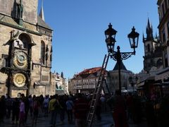5 jours à Prague pour commencer. J’aurais pu difficilement faire mieux. Arrivé le soir et ayant un peu cafouillé pour trouver l’auberge de jeunesse, j’ai remis la découverte de la ville au lendemain matin. À 9 heures, c’était parti pour une première balade, et une tombée sous le charme quasi instantanée. Evidemment, car il faudrait être bien difficile pour ne pas aimer cette ville. Bien trop de belles choses à décrire, trop de variété pour en faire un résumé digne de ce nom. D’un côté de la Vltava/Moldau, les immeubles Art nouveau, notamment dans le quartier juif, font lever la tête, mêlant leurs extravagances aux survivances d’autres styles. Autour de l’énorme et impressionnante place centrale, vers laquelle les pas semblent toujours mener, certaines rues ont gardé une organisation quasi-médiévale, un peu labyrinthique, qui cache tout un tas de petites places et cours intérieures. Sur l’autre rive, à Malá Strana, le baroque règne en maître. Les toîts de tuiles, desquels émergent quantité de clochers, tapissent la colline qui monte jusqu’au chateau et à l’imposante cathédrale… Hum, ça doit vraiment être lourd d’écrire des guides touristiques !