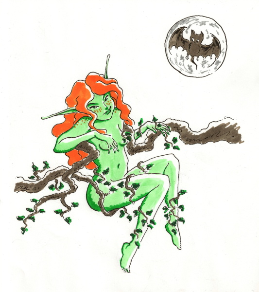 Pour Halloween, Ivy s’est déguisée à la va-vite en Poison Ivy. Si vous voyez pas la différence, c’est normal :P . En fait, je m’étais rendu compte assez tardivement après avoir créé et baptisé Ivy, que c’était en gros méchamment la même >_<. De bonne foi, c’était pas voulu, surtout que je ne connais rien de Batman en comics, et que la Poison Ivy jouée par Uma Thurman dans un des très mauvais films de la série donnait plutôt envie de l’oublier. À la limite, c’était peut-être une réminiscence de la série animée, dans laquelle elle est apparue quelquefois et était plutôt sympa…