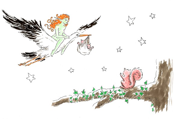 Le coup “naissance/cigogne” est un peu éculé, mais dessiner une cigogne c’est cool :P