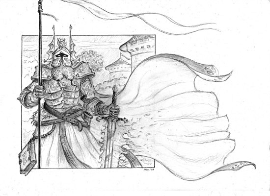 Et ça tombe bien, j’avais une commande tout à fait dans le contexte. Ce paladin donc. C’est un cadeau pour quelqu’un qui je pense a en tête beaucoup de références à la World of Warcraft. Je suis pas allé voir à quoi ressemblait un paladin dans WoW (mais les yeux sont une référence directe à un truc que j’aimais bien dans Warcraft 2… ouch, ça rajeunit pas !), mais après tout c’est toujours un peu les mêmes clichés marrants, qui permettent de s’amuser sans prise de tête. Là je me suis aussi lâché sur le cadrage, je sais pas pourquoi, j’avais envie :). Mine de rien, entre les Ivy, les random girls et les portraits de mon modèle préféré, ça faisait une éternité que je n’avais pas dessiné dans le style high fantasy… Pas de risque cependant que j’en refasse mon sujet exclusif :)