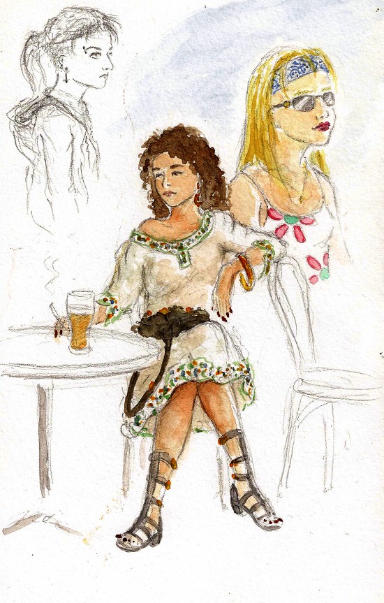 Trois estivales en retard, une vite fait qui joue avec ses cheveux, et une mignonnette tatouée-mais-pas-percée, pour Kerlu qui aimait bien le côté tatouage mais moins le côté piercing des précédentes.