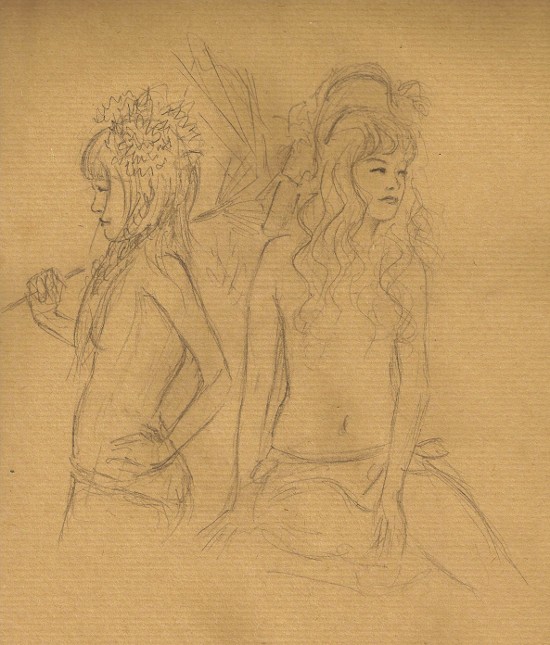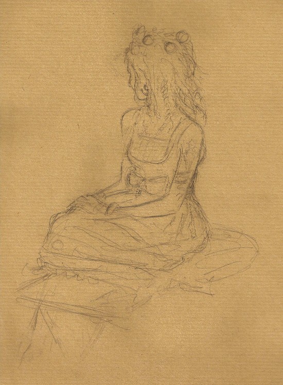 J’ai galéré (et moyennement réussi…) sur deux trucs : trouver une bonne place, et surtout ne pas me perdre dans les vêtements et coiffures complexes, voire vertigineux, imposés par le thème. La jolie modèle aux cheveux roses en particulier, avec ses tatouages, ses piercings, ses froufrous, ses bijoux, et ses espèces de dreadlocks, c’était un peu un défi personnifié au perfectionnisme :).