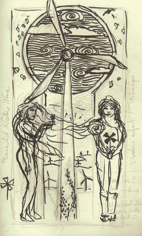 J’adore voir ce genre de choses chez les autres, alors voilà une rétrospective des étapes de réalisation de ma grande linogravure sur les éoliennes.