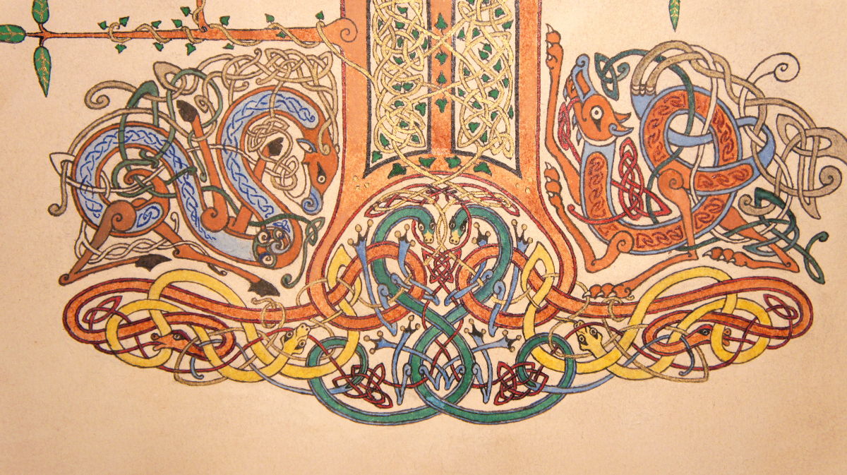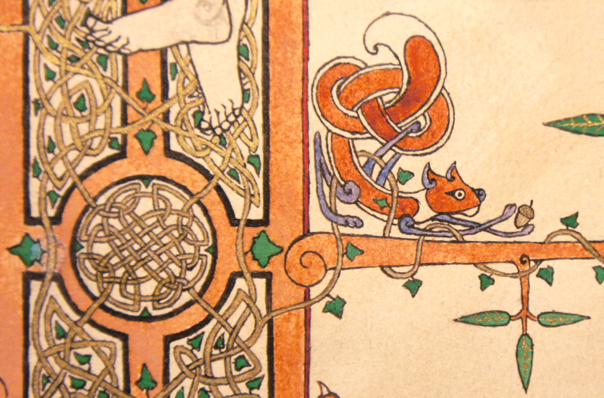 Secret de fabrication : ce nœud de racines-lézards-serpents est inspiré d’un motif sur la première page de l’évangile de Marc.