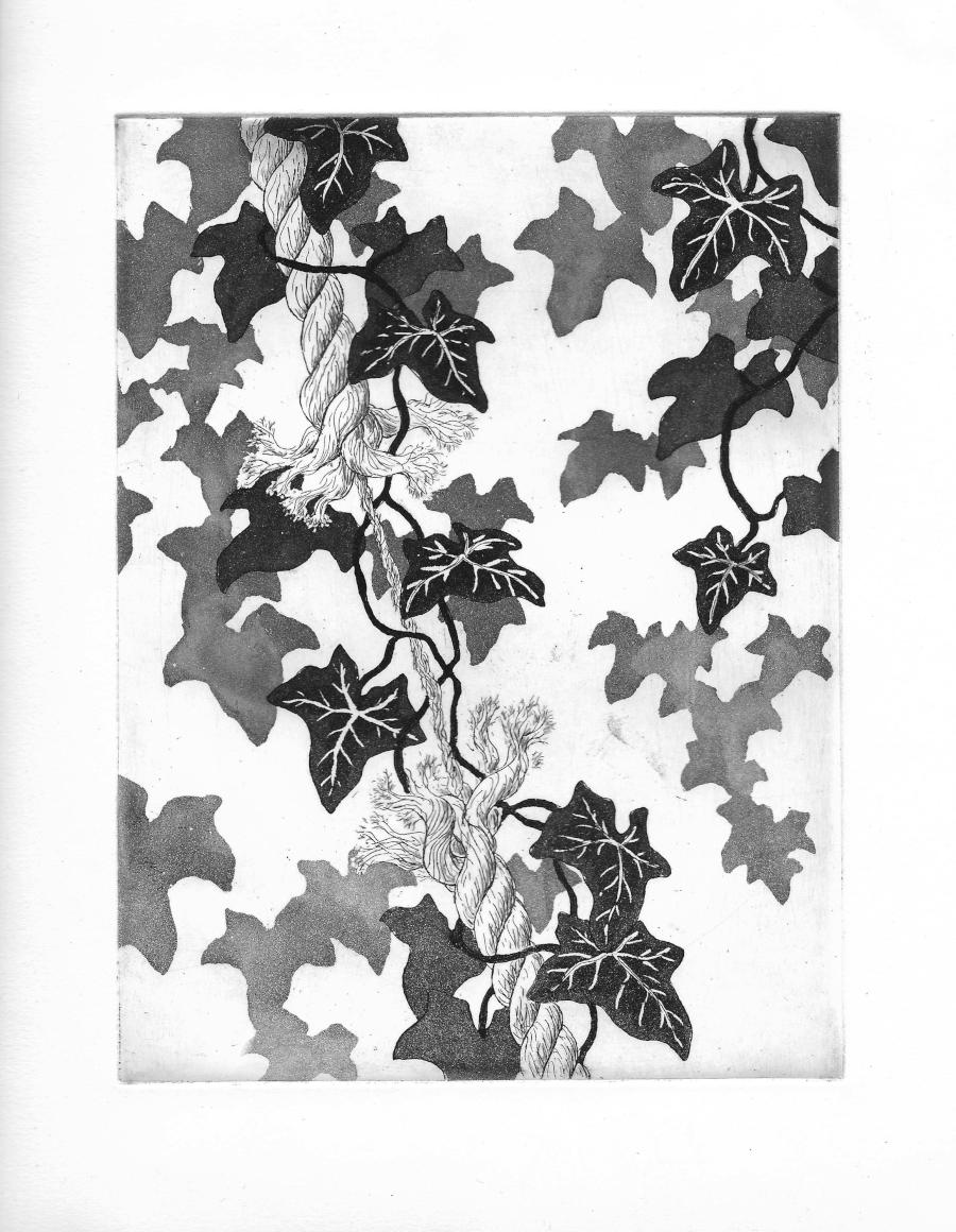 Lierre et corde, taille-douce 14 janvier 2019 aquatinte eau-forte gravure lierre taille-douce Eau-forte, aquatinte et pointe sèche, 15 × 20 cm. Carte de vœux 2019 Stage d'eau-forte