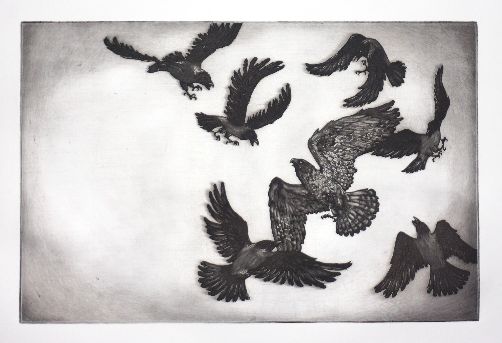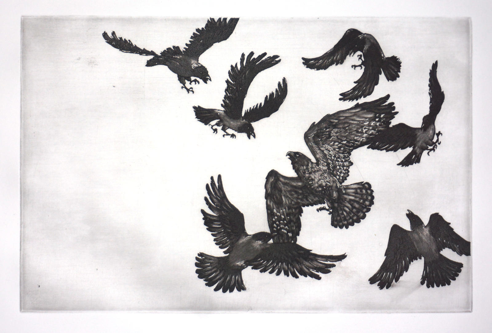 Mobbing - Aquatinte sur zinc mordue au sulfate de cuivre, 30 x 20 cm.