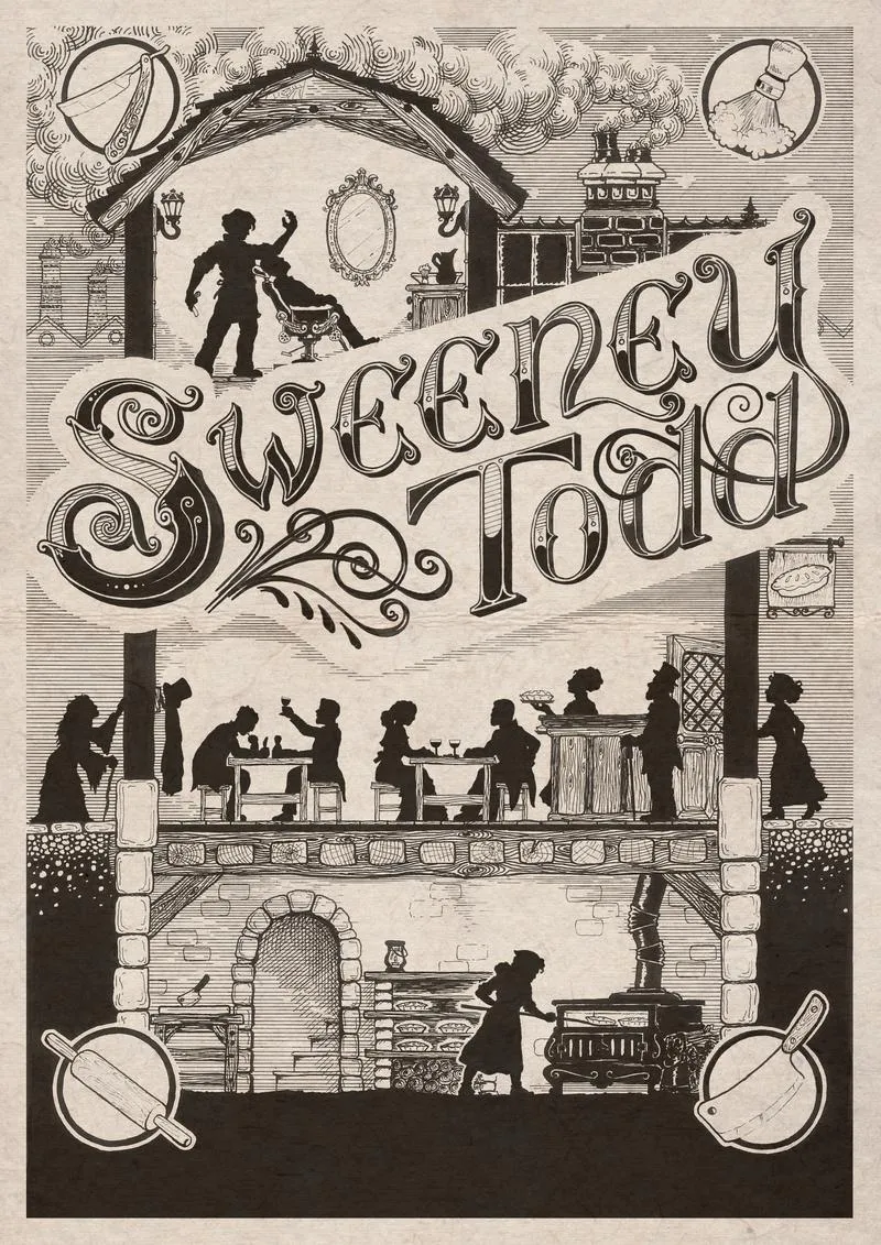 Les comédies musicales ne sont pas du tout mon truc et je pensais que Sweeney Todd était seulement un film de Tim Burton assez médiocre. Mais quel que soit le sujet, je suis souvent motivé quand on me fait une commande. Débarrassée de tout le fatras burtonien que j’avais en tête, l’œuvre telle que me l’a décrite la metteuse en scène est plutôt intéressante, avec un sous-texte social marqué. Et l’univers visuel recherché était chouette, avec les couvertures de penny dreadful comme référence principale.