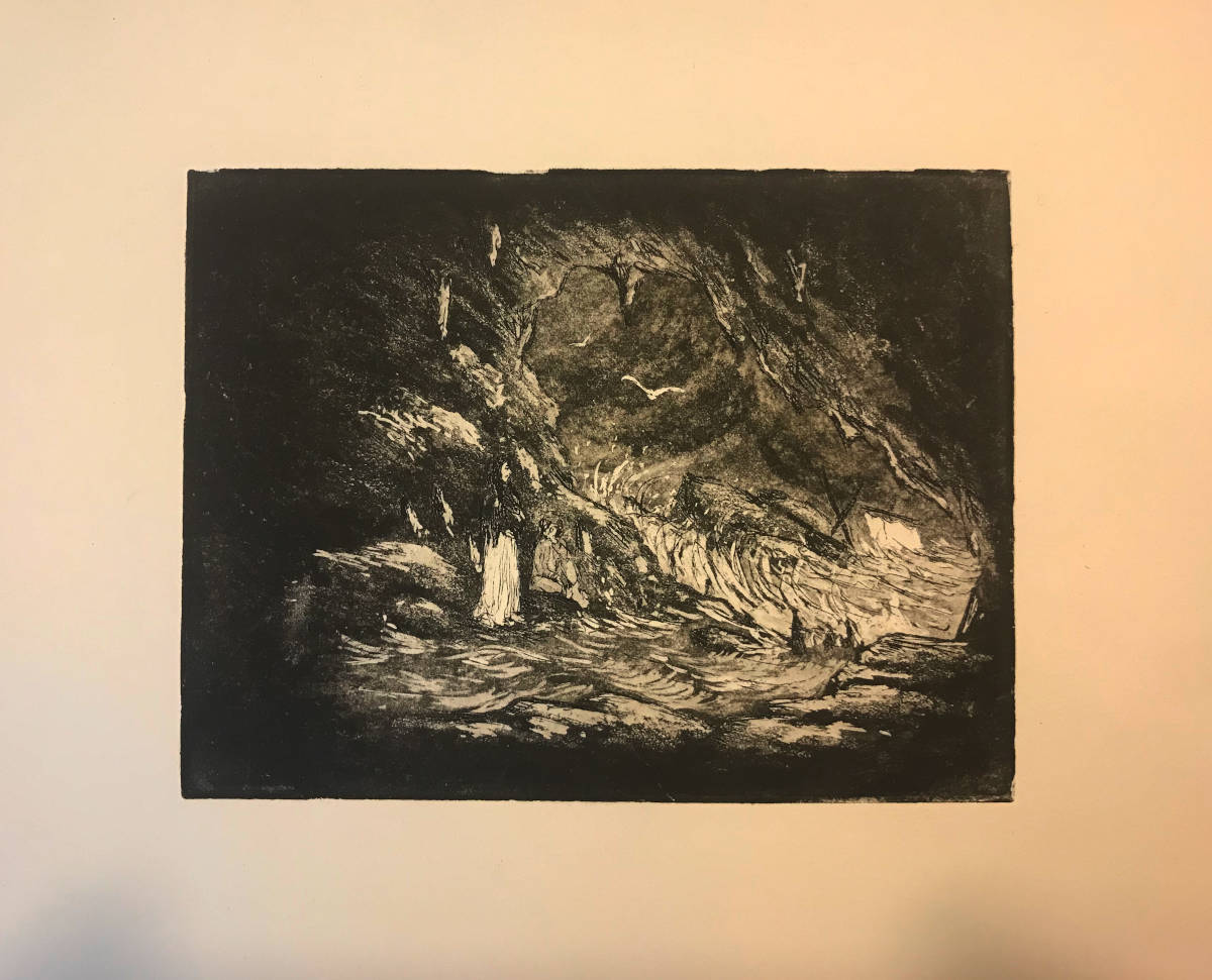 Grotte du naufrage. Aquatinte, 20x15 cm.