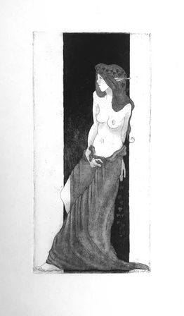 Une Ivy vaguement Art nouveau, pour renouer avec ces vieilles lubies que je n’ai jamais trop explorées en taille-douce. Je suis plutôt content de la compo et de cette grosse bande noire, dommage que j’aie utilisé une pointe un peu trop fine pour tracer les traits dans le vernis, ça méritait quelque chose d’un peu plus franc.