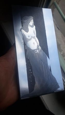 Un tout petit burin fait en nocturne à l’atelier. Le stage était plutôt consacré à la gravure indirecte, mais l’occasion était trop belle de pratiquer un peu le burin, vu que j’ai de grandes ambitions avec :). Conclusion : j’ai encore besoin d’entraînement et surtout de savoir mieux aiguiser mes lames, parce que ces gros traits au milieu ça ne va pas du tout.