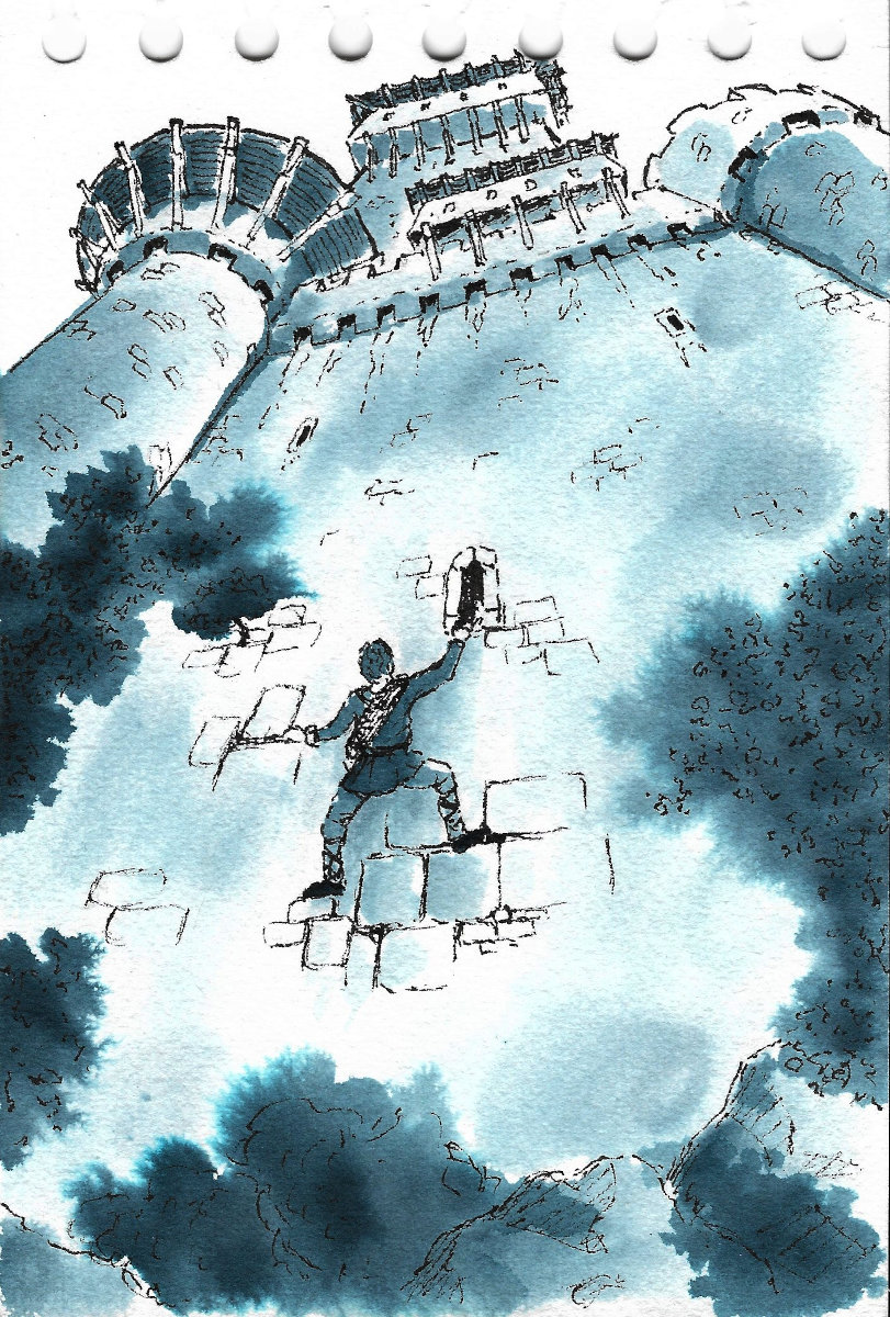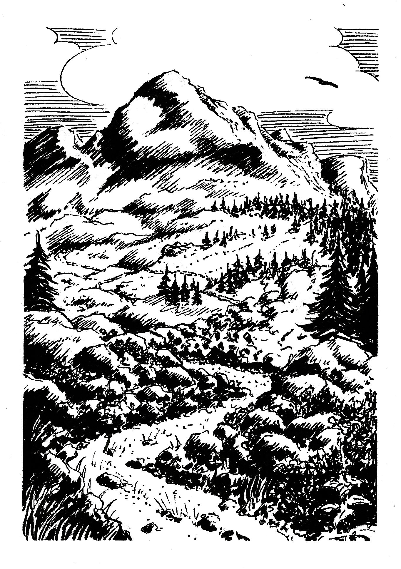 Hormis ces dessins à l’encre bleue, j’ai fait quelques autres trucs juste au trait. À mon sens pas très inspirés, trop compliqués ou loupés sur un détail ou deux. Quand je regarde les dessins de 2016, j’ai l’impression d’avoir régressé. Clairement je manque de pratique là-dessus. Sans doute aussi de motivation, parce que ce n’est pas un medium que j’apprécie beaucoup. Allez, j’aime quand même bien le paysage de montagne, et l’Andromède avait du potentiel.