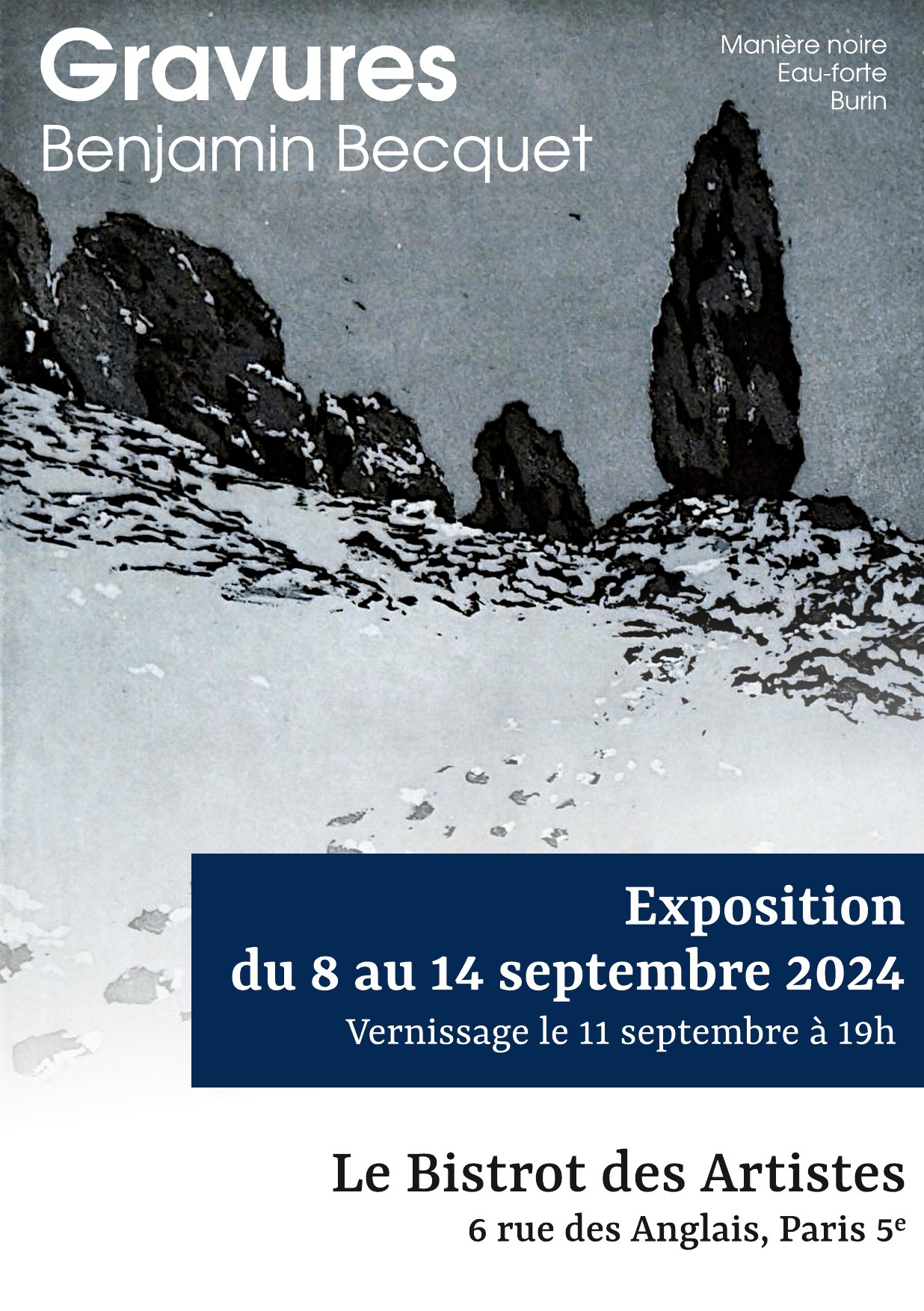 Comme je l’avais indiqué il y a quelques mois (et totalement omis d’en reparler ici depuis), il y a quelque temps avait lieu ma première exposition de gravures. C’était au Bistrot des Artistes, petit bar parisien que le patron a à cœur de faire vivre aussi comme un lieu lié à la création artistique, en hébergeant des séances de dessin (d’où viennent la plupart de ces esquisses) et en prêtant ses murs à la semaine aux artistes amateurs qui le veulent.