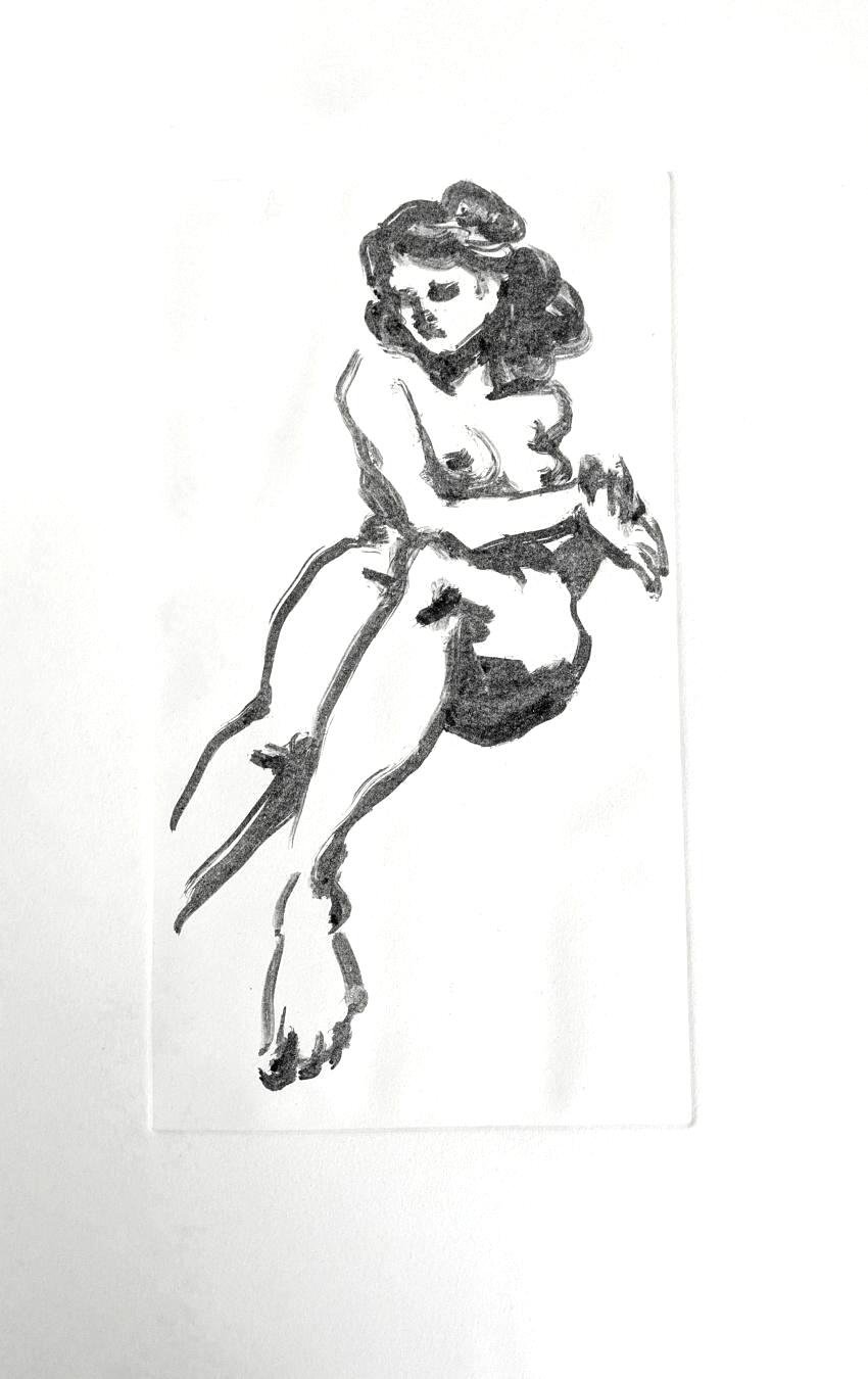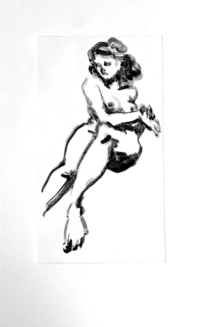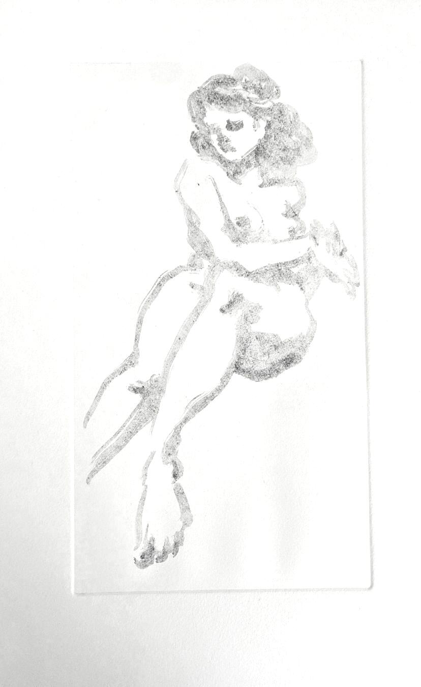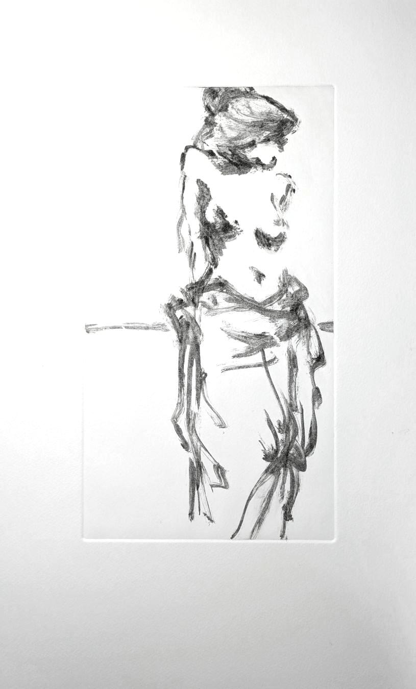 J’aime beaucoup ces nus, ils ne ressemblent pas du tout à ce que je fais d’habitude. Même s’ils sont un peu trompeurs. Ils semblent être faits de traits lâchés et sans filet, alors qu’ils sont pleins des retouches que permet l’essuyage sur la plaque lisse. Mais bon, c’est toujours ce même jeu de faux-semblant, tant mieux si ça marche.