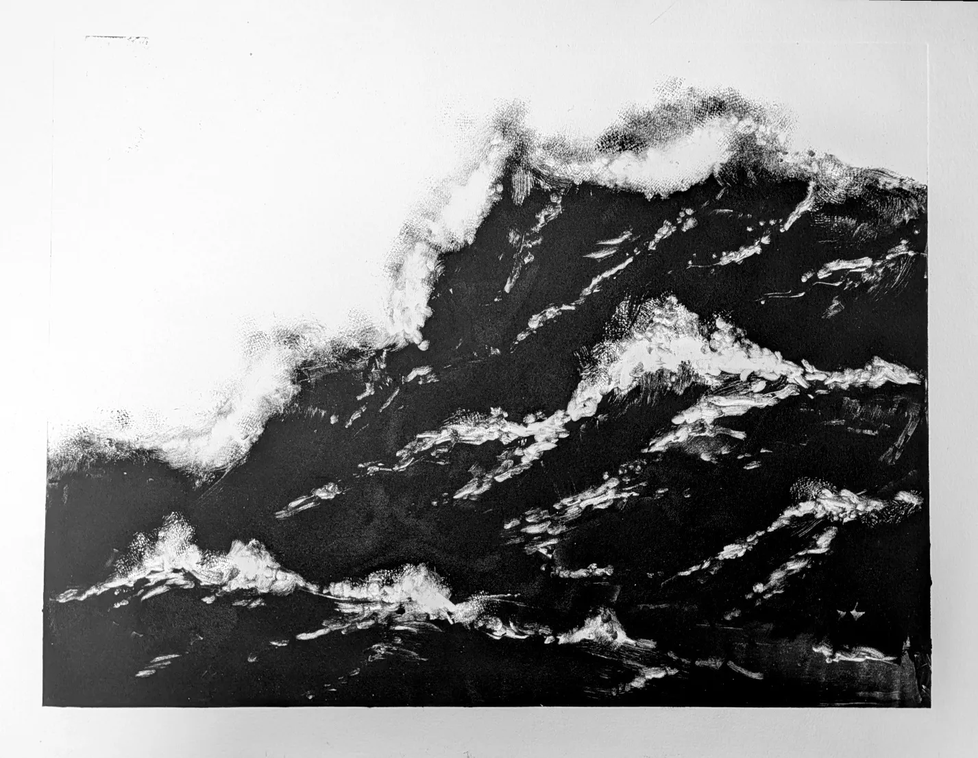 J’en suis donc là de mon exploration. J’ai rarement eu de période où j’étais content de montrer tant de choses faites en si peu de temps. Je suis moins frénétique qu’au début, mais je sais que ce n’est pas qu’une passade, ni une infidélité à la gravure, que je continue de plus belle. Je pourrais aussi, si je le voulais, mélanger les deux, le monotype se fondant bien dans la gravure en permettant des tirages “uniques/multiples”. Mais pour l’instant ça ne m’attire pas. La couleur non plus. Pour l’instant je suis content de l’explorer à part, sous cet angle un peu austère.