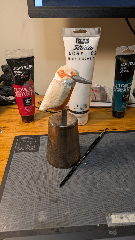 Étape de sculpture, avec le bec installé, la silhouette est quasi-terminée